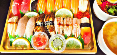 18 pieces of assorted nigiri sushi (without maki sushi). served with salad and miso soup